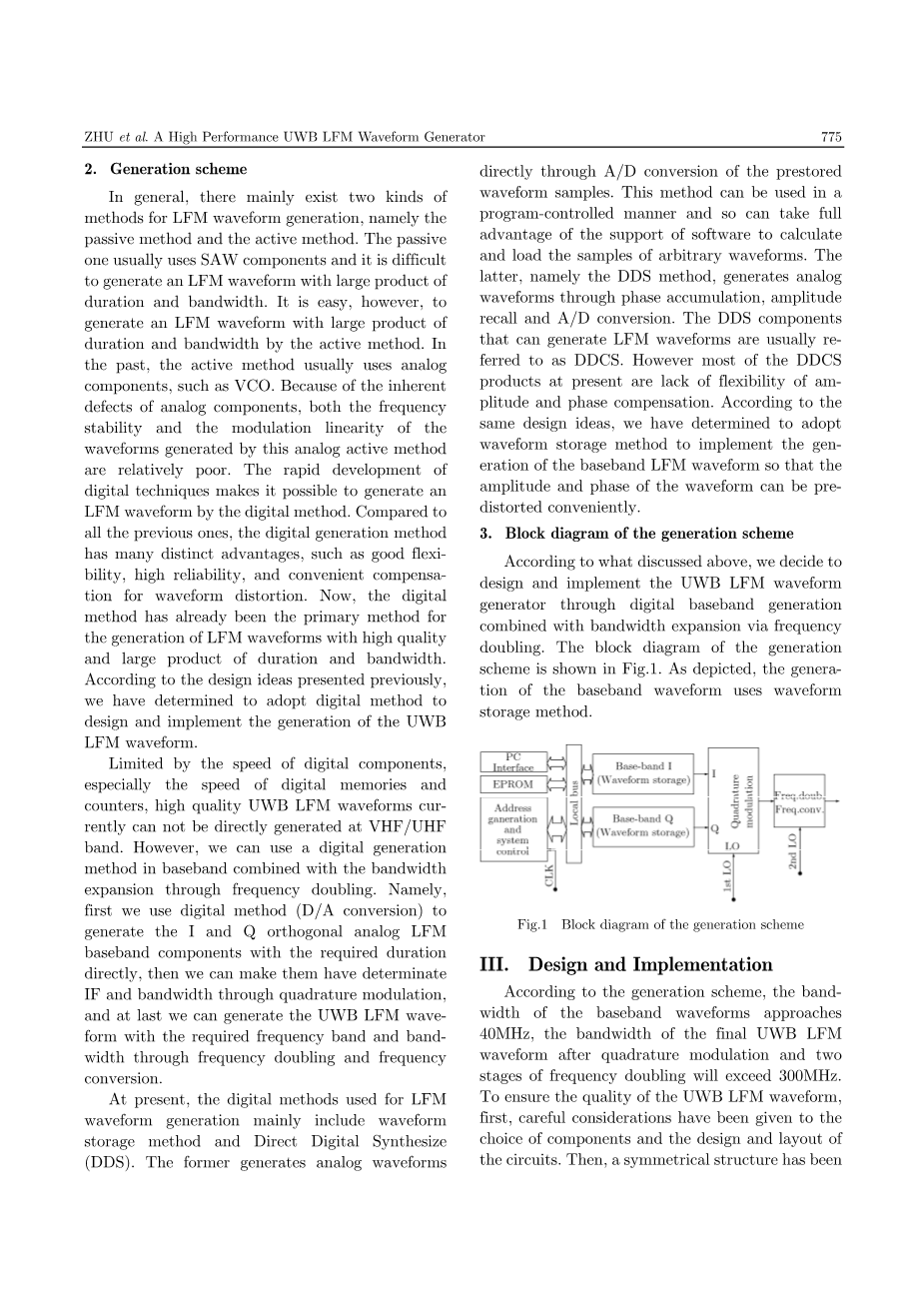 产生高的是相当困难的性能UWB LFM波形,其相对带宽超过85%atVHF / UHF频段。 为达到这个目标,设计思想确定如下:这是至关重要的对于UWB LFM波形发生器来说预失真补偿能力,以确保我们可以实现UWB LFM波形与现有组件具有高性能。