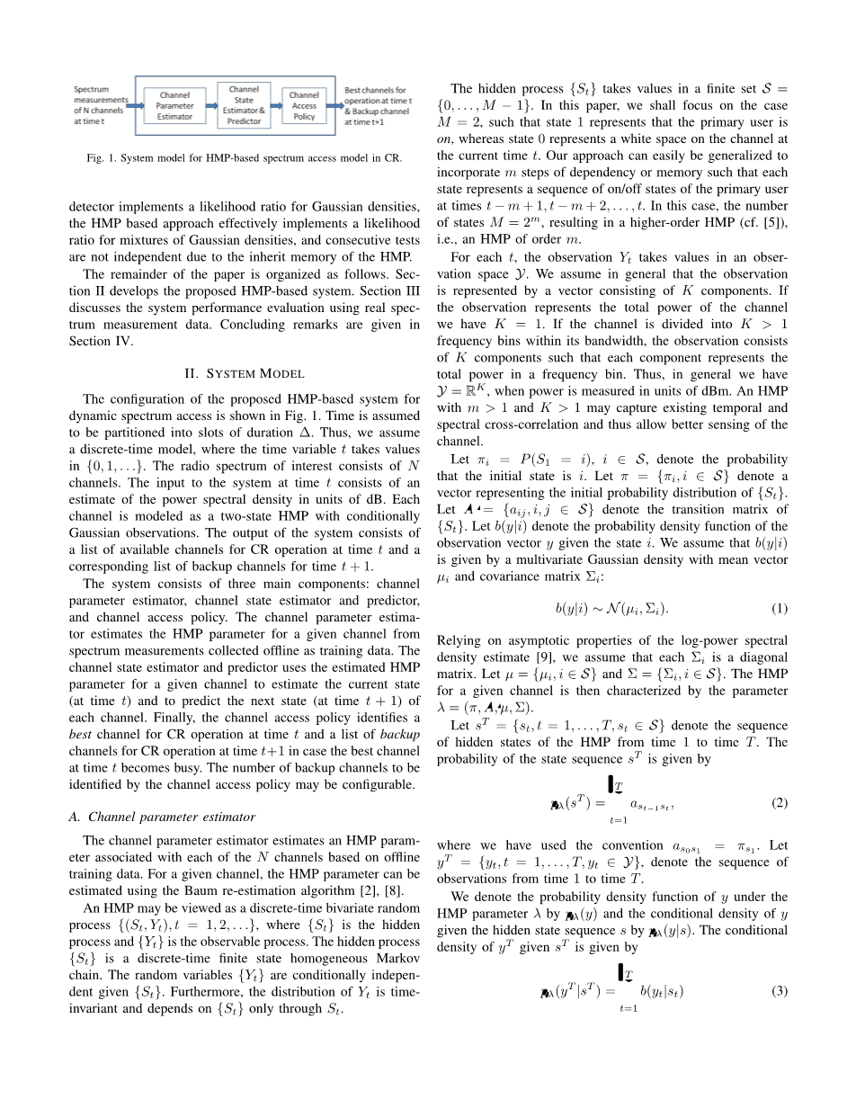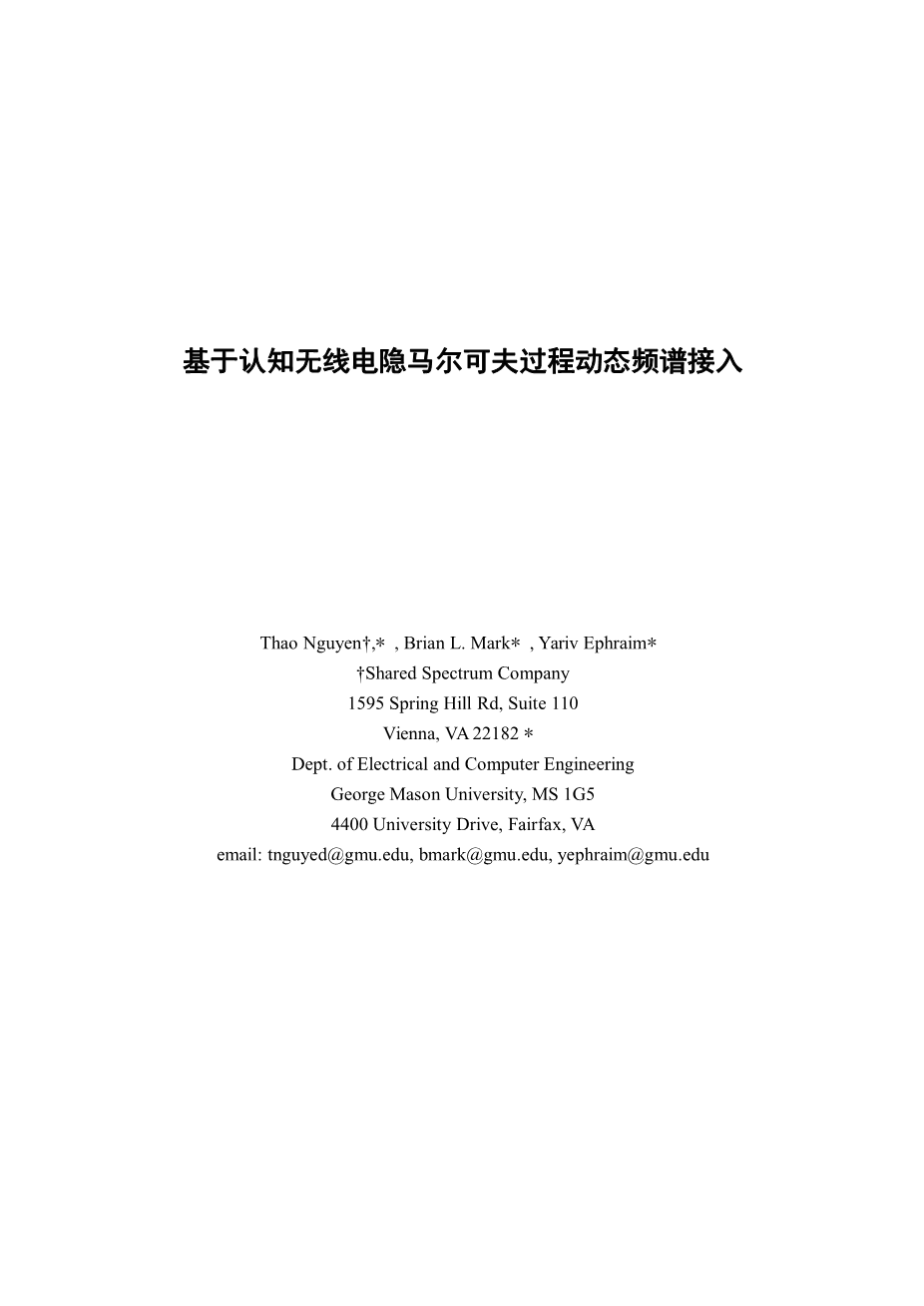 基于认知无线电隐马尔可夫过程动态频谱接入外文翻译资料