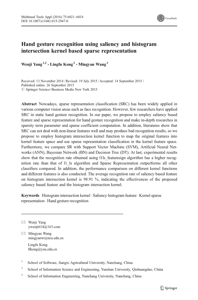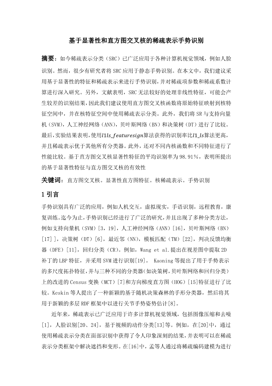 基于显著性和直方图交叉核的稀疏表示手势识别外文翻译资料