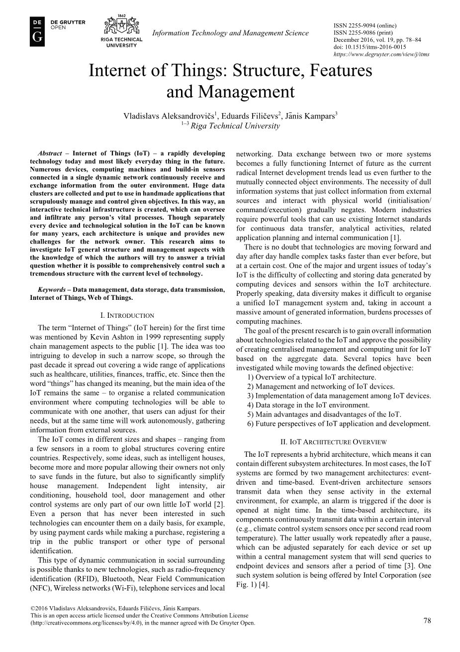 本研究的目标是获得与物联网相关的技术的整体信息,并批准基于聚合数据为物联网创建集中管理和计算单元的可能性。在朝着既定目标迈进时,已经研究了几个主题: