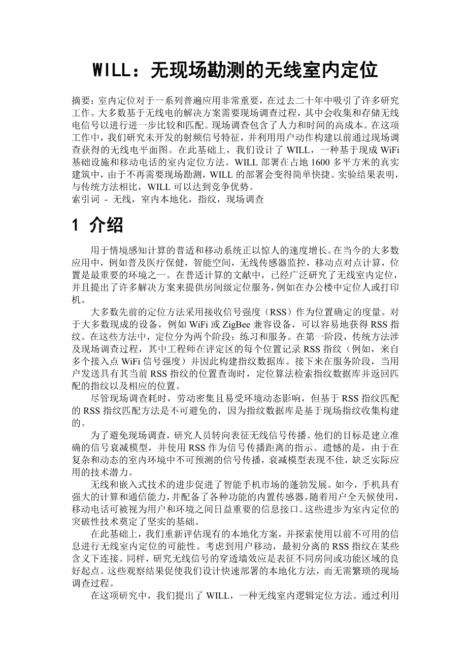 WILL:无现场勘测的无线室内定位外文翻译资料 2021-11-06 19:34:53 英语原文共 10 页 英语原文共 9 页 原文和译文剩余内容已隐藏,您需要先支付 30元 才能查看原文和译文全部内容!立即支付 发小红书推广免费获取该资料资格。点击链接进入获取推广文案即可: Ai一键组稿 | 降AI率 | 降重复率 | 论文一键排版 PREVIOUS NEXT 您可能感兴趣的文章 看边界:边界感知面部对齐算外文翻译资料 看边界:边界感知面部对齐算外文翻译资料 一种支持分布式正态智能监控的多代理体系结构外文翻译资料 增强的无线局域网协作MAC外文翻译资料 近眼显示器的绝对辐射和光度测量外文翻译资料 红外遥控系统外文翻译资料 一幅单一图像中雨滴去除的专注生成对抗性网络外文翻译资料 深度残差学习在图像识别中的应用外文翻译资料 低成本,便携式室内环境质量监测装置的设计与开发外文翻译资料 使用基于查询蓝牙的RSSI概率分布进行室内定位外文翻译资料
