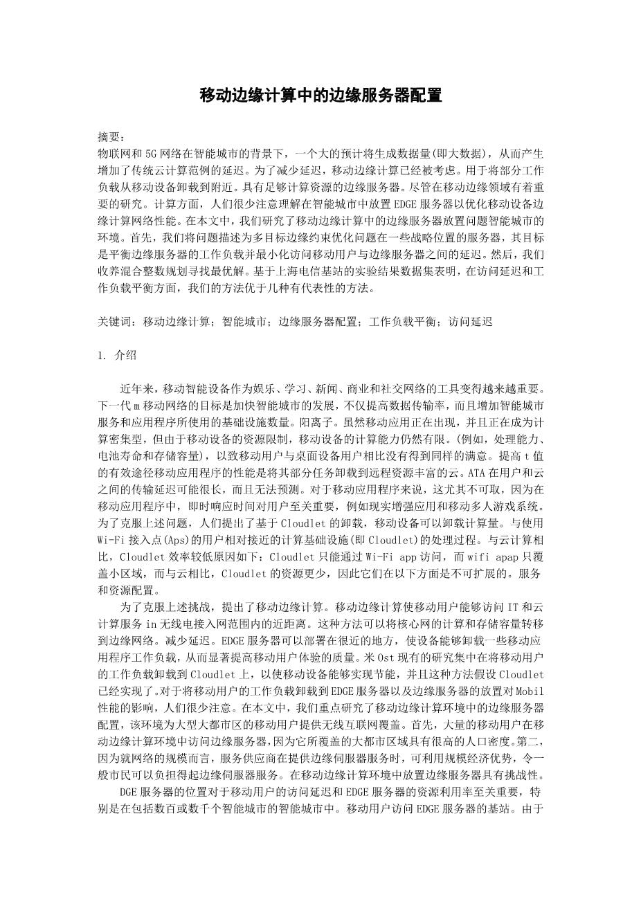 移动边缘计算中的边缘服务器配置外文翻译资料 2021-11-06 19:50:08 英语原文共 17 页 英语原文共 6 页 原文和译文剩余内容已隐藏,您需要先支付 30元 才能查看原文和译文全部内容!立即支付 发小红书推广免费获取该资料资格。点击链接进入获取推广文案即可: Ai一键组稿 | 降AI率 | 降重复率 | 论文一键排版 PREVIOUS NEXT 您可能感兴趣的文章 看边界:边界感知面部对齐算外文翻译资料 看边界:边界感知面部对齐算外文翻译资料 一种支持分布式正态智能监控的多代理体系结构外文翻译资料 增强的无线局域网协作MAC外文翻译资料 近眼显示器的绝对辐射和光度测量外文翻译资料 红外遥控系统外文翻译资料 一幅单一图像中雨滴去除的专注生成对抗性网络外文翻译资料 深度残差学习在图像识别中的应用外文翻译资料 低成本,便携式室内环境质量监测装置的设计与开发外文翻译资料 使用基于查询蓝牙的RSSI概率分布进行室内定位外文翻译资料