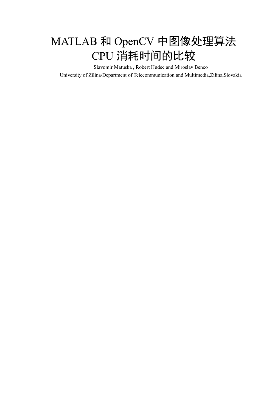 MATLAB和OpenCV中图像处理算法CPU消耗时间的比较外文翻译资料 2021-11-06 19:55:49 英语原文共 26 页 原文和译文剩余内容已隐藏,您需要先支付 30元 才能查看原文和译文全部内容!立即支付 发小红书推广免费获取该资料资格。点击链接进入获取推广文案即可: Ai一键组稿 | 降AI率 | 降重复率 | 论文一键排版 PREVIOUS NEXT 您可能感兴趣的文章 看边界:边界感知面部对齐算外文翻译资料 看边界:边界感知面部对齐算外文翻译资料 一种支持分布式正态智能监控的多代理体系结构外文翻译资料 增强的无线局域网协作MAC外文翻译资料 近眼显示器的绝对辐射和光度测量外文翻译资料 红外遥控系统外文翻译资料 一幅单一图像中雨滴去除的专注生成对抗性网络外文翻译资料 深度残差学习在图像识别中的应用外文翻译资料 低成本,便携式室内环境质量监测装置的设计与开发外文翻译资料 使用基于查询蓝牙的RSSI概率分布进行室内定位外文翻译资料