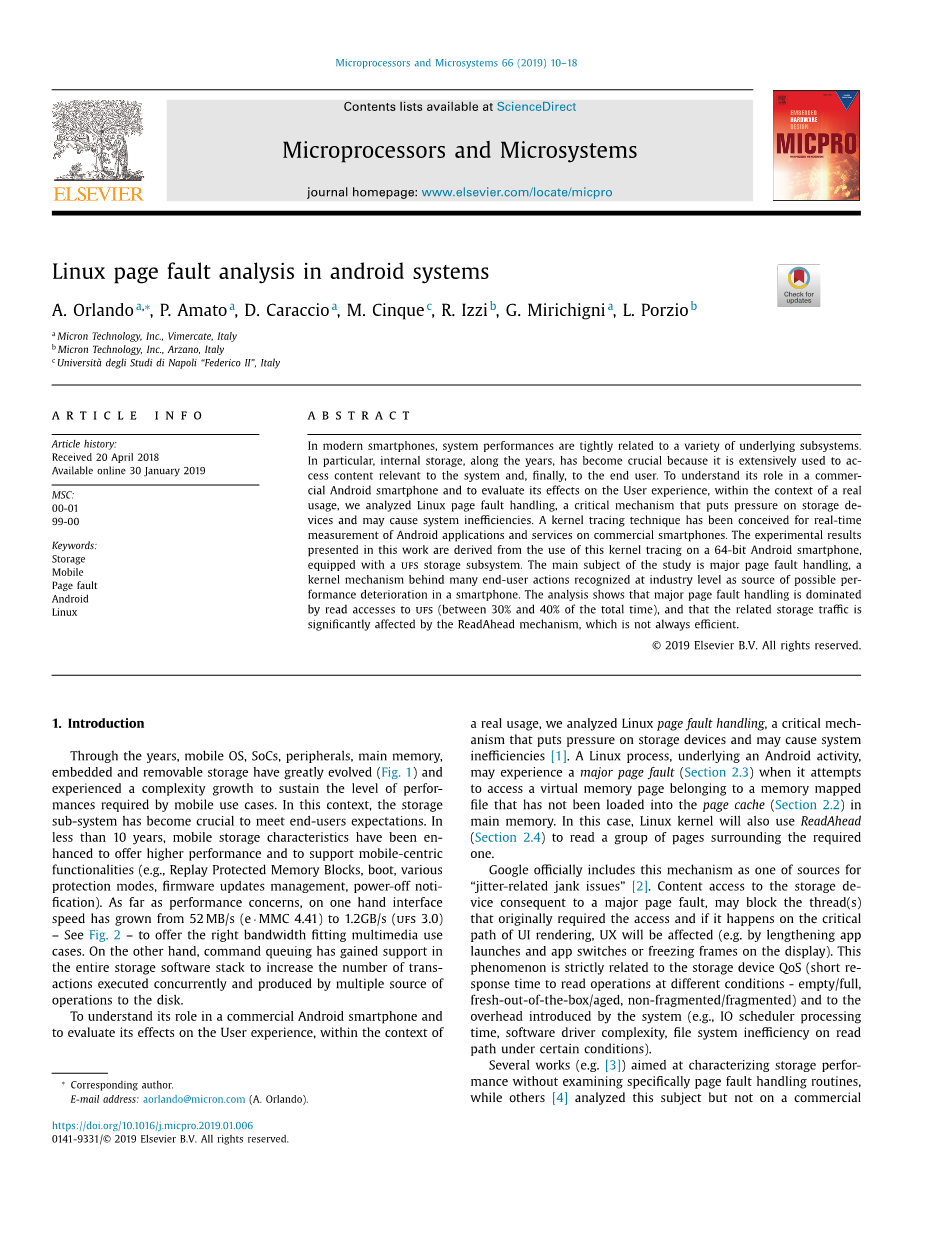 在现代智能手机中,系统性能与各种底层子系统紧密相关。特别是,多年来,内部存储变得至关重要,因为它被广泛用于访问与系统相关的内容,最终用于最终用户。为了理解它在商业Android智能手机中的作用并评估其对用户体验的影响,在实际使用的背景下,我们分析了Linux页面错误处理,这是一种对存储设备施加压力并可能导致的关键机制系统效率低下的机制。内核跟踪技术被设想用于商业智能手机上的Android应用程序和服务的实时测量。这项工作中提供的实验结果来源于在配备UNIX文件系统的存储子系统的64位Android智能手机上使用此内核跟踪。该研究的主要主题是主要的页面错误处理,这是许多最终用户行为背后的核心机制,在行业层面被认为是智能手机可能性能下降的根源。分析表明,主要的页面错误处理主要是对UNIX文件系统的读取访问(占总时间的30%到40%),并且相关的存储流量受Linux的文件预读机制的显着影响,这并不总是有效的。
