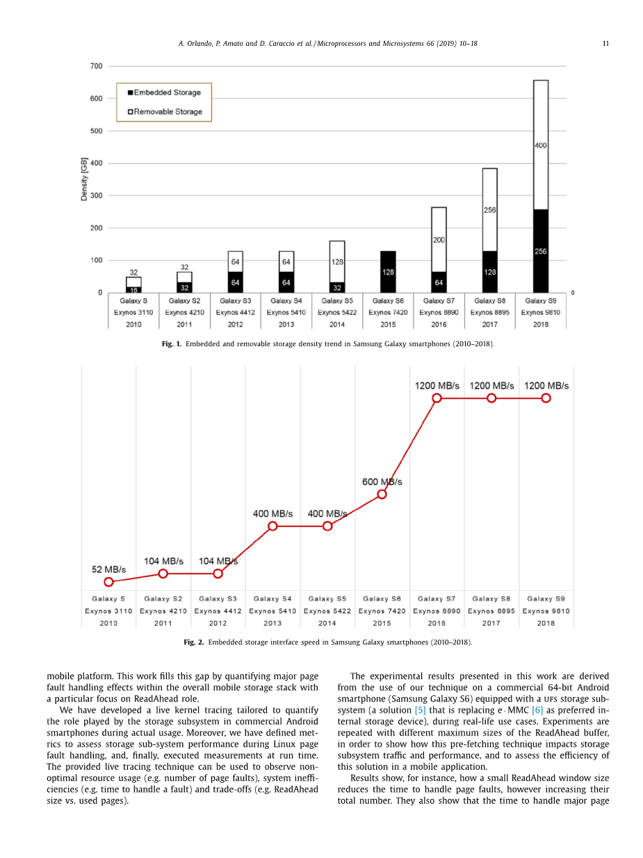 在现实使用案例中,这项工作中的实验结果来源于我们的技术在配备ufs存储子系统的商用64位Android智能手机(三星Galaxy S6)上的应用(一种替代eMMC的解决方案[5] [6]作为首选的内部存储设备)。使用不同最大尺寸的ReadAhead缓冲区重复实验,以显示此预取技术如何影响存储子系统流量和性能,以及评估此解决方案在移动应用程序中的效率。