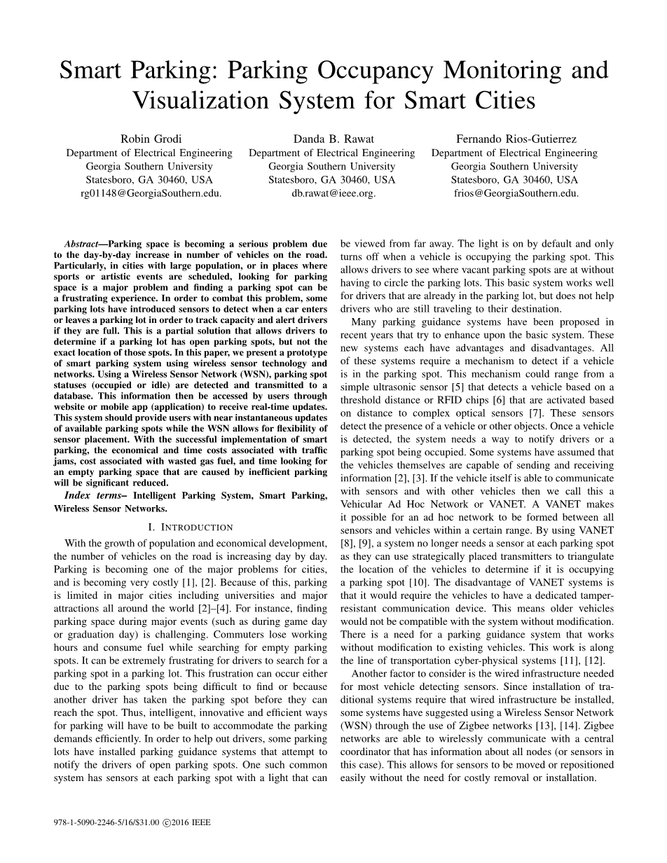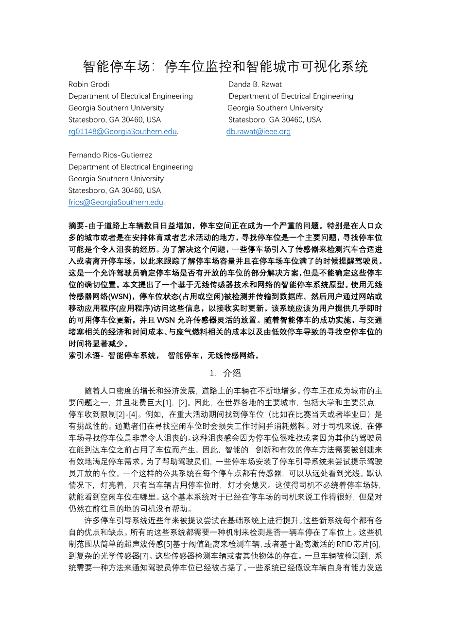 智能停车场:停车位监控和智能城市可视化系统外文翻译资料 2021-11-08 22:24:19 英语原文共 5 页 英语原文共 8 页 原文和译文剩余内容已隐藏,您需要先支付 30元 才能查看原文和译文全部内容!立即支付 发小红书推广免费获取该资料资格。点击链接进入获取推广文案即可: Ai一键组稿 | 降AI率 | 降重复率 | 论文一键排版 PREVIOUS NEXT 您可能感兴趣的文章 看边界:边界感知面部对齐算外文翻译资料 看边界:边界感知面部对齐算外文翻译资料 一种支持分布式正态智能监控的多代理体系结构外文翻译资料 增强的无线局域网协作MAC外文翻译资料 近眼显示器的绝对辐射和光度测量外文翻译资料 红外遥控系统外文翻译资料 一幅单一图像中雨滴去除的专注生成对抗性网络外文翻译资料 深度残差学习在图像识别中的应用外文翻译资料 低成本,便携式室内环境质量监测装置的设计与开发外文翻译资料 使用基于查询蓝牙的RSSI概率分布进行室内定位外文翻译资料