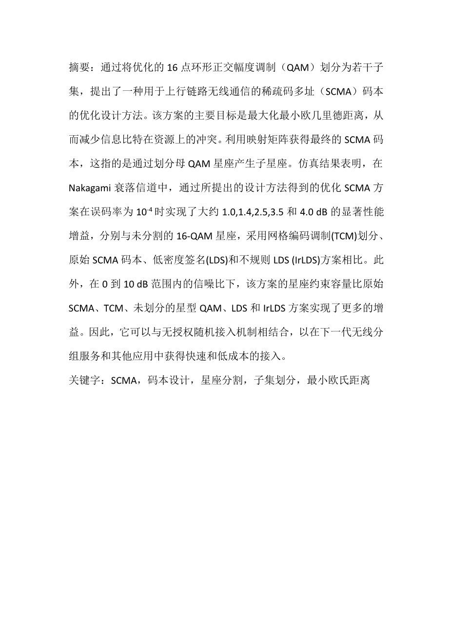 基于5G系统的稀疏码多址接入技术应用研究外文翻译资料 2021-11-08 22:24:31 英语原文共 11 页 英语原文共 17 页 原文和译文剩余内容已隐藏,您需要先支付 30元 才能查看原文和译文全部内容!立即支付 发小红书推广免费获取该资料资格。点击链接进入获取推广文案即可: Ai一键组稿 | 降AI率 | 降重复率 | 论文一键排版 PREVIOUS NEXT 您可能感兴趣的文章 看边界:边界感知面部对齐算外文翻译资料 看边界:边界感知面部对齐算外文翻译资料 一种支持分布式正态智能监控的多代理体系结构外文翻译资料 增强的无线局域网协作MAC外文翻译资料 近眼显示器的绝对辐射和光度测量外文翻译资料 红外遥控系统外文翻译资料 一幅单一图像中雨滴去除的专注生成对抗性网络外文翻译资料 深度残差学习在图像识别中的应用外文翻译资料 低成本,便携式室内环境质量监测装置的设计与开发外文翻译资料 使用基于查询蓝牙的RSSI概率分布进行室内定位外文翻译资料