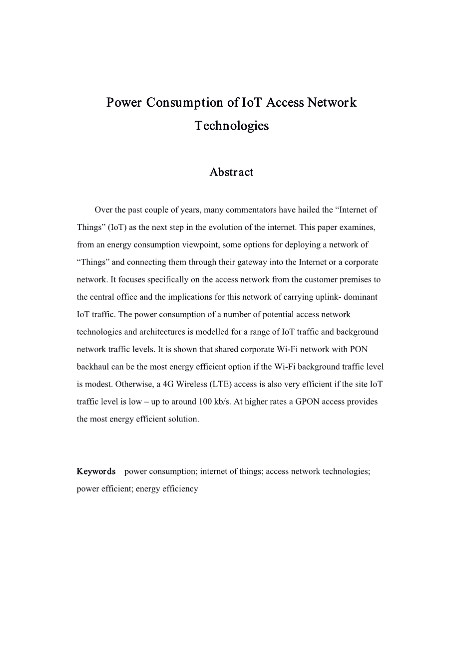 关键词 功耗;物联网;接入网技术;权力有效;能源效率