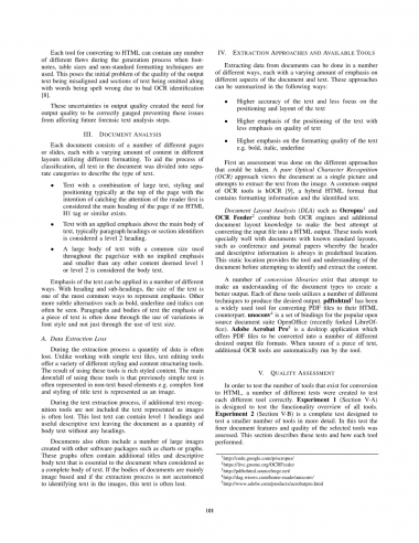 Insomecasestoolsfailedtop生产输出特定文件类型,防止提取幻灯片/页面进行分析。这些失败的转换在表II中标识。