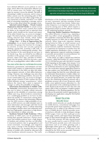 在本文中,我们研究了用户的在线重新发布行为对底层计算机网络的影响,并且我们使用微信网数据集展示了三个典型的网络应用程序,如图1。