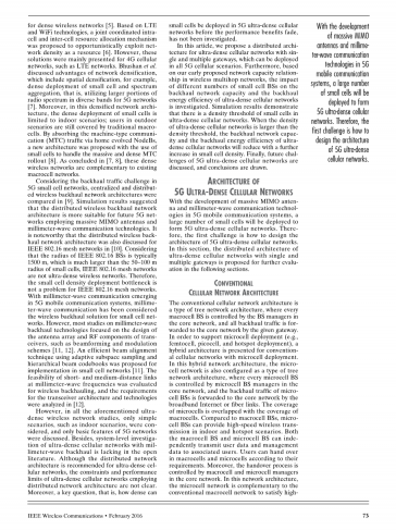 但是,在所有上述超密集无线网络研究中,只是简单场景,例如室内场景,被认为是,只有5G网络的基本功能讨论过。此外,公开缺乏对y有mil-limeter-wave回程的超密集蜂窝网络的系统级调查文献。虽然是分布式网络架构推荐用于超密集的网络,约束和性能使用的超密集蜂窝网络的限制分布式网络架构尚不清楚。而且,一个关键问题,即多么密集小细胞部署在5G超密细胞中在性能优势消退之前的网络,尚未经过调查。在本文中,我们提出了一个分布式架构,用于具有单一和多个网关的超密集蜂窝网络,可以部署在所有5G蜂窝场景中。此外,基于关于我们早期提出的网络容量关系在无线多跳网络中的影响不同数量的小细胞BSs回程网络容量和回程超密集蜂窝网络的能效被调查。仿真结果证明在...中存在小细胞的密度阈值超密集的蜂窝网络。当密度超密集蜂窝网络的数量大于密度阈值,超密集蜂窝网络的回程网络容量和回程能量效率将进一步降低增加小细胞密度。最后,5G超密集蜂窝网络的未来挑战是讨论,并得出结论。