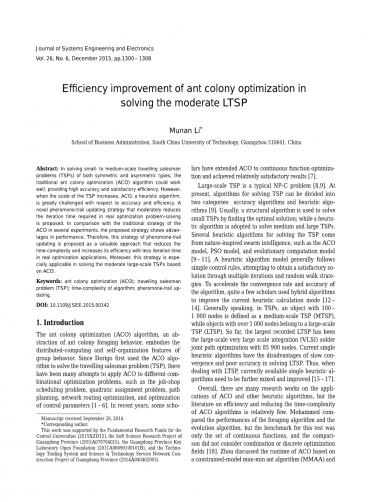 Key Words: ant colony optimization (ACO); travelling salesman problem (TSP); time-complexity of algorithm; pheromone-trail up- dating.