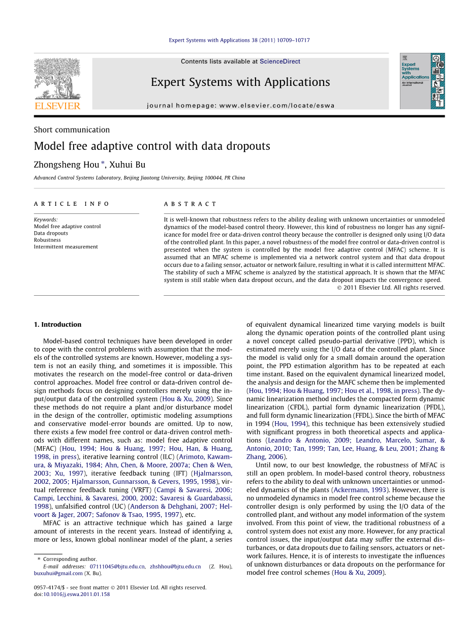 无模型自适应控制 数据丢失 鲁棒性 间歇测量