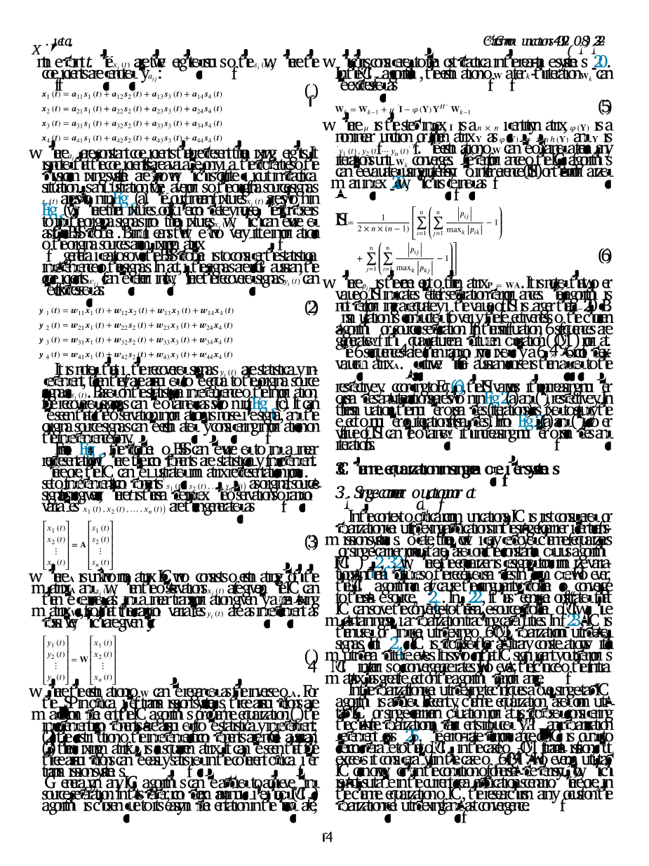 其中mu;是阶梯指数,phi;Y是ntimes;n单位矩阵,((y)是矩阵nonlinear的非线性函数,为phi;(Y)=ℎℎ(n),tan h(Y)为[y1(t),y2( t)⋯yn(t)]T。估计可以在许多迭代之后获得,直到收敛。 ICA算法的性能可以使用符号间干扰(ISI)或标准化的Amari索引进行评估,该索引被定义为