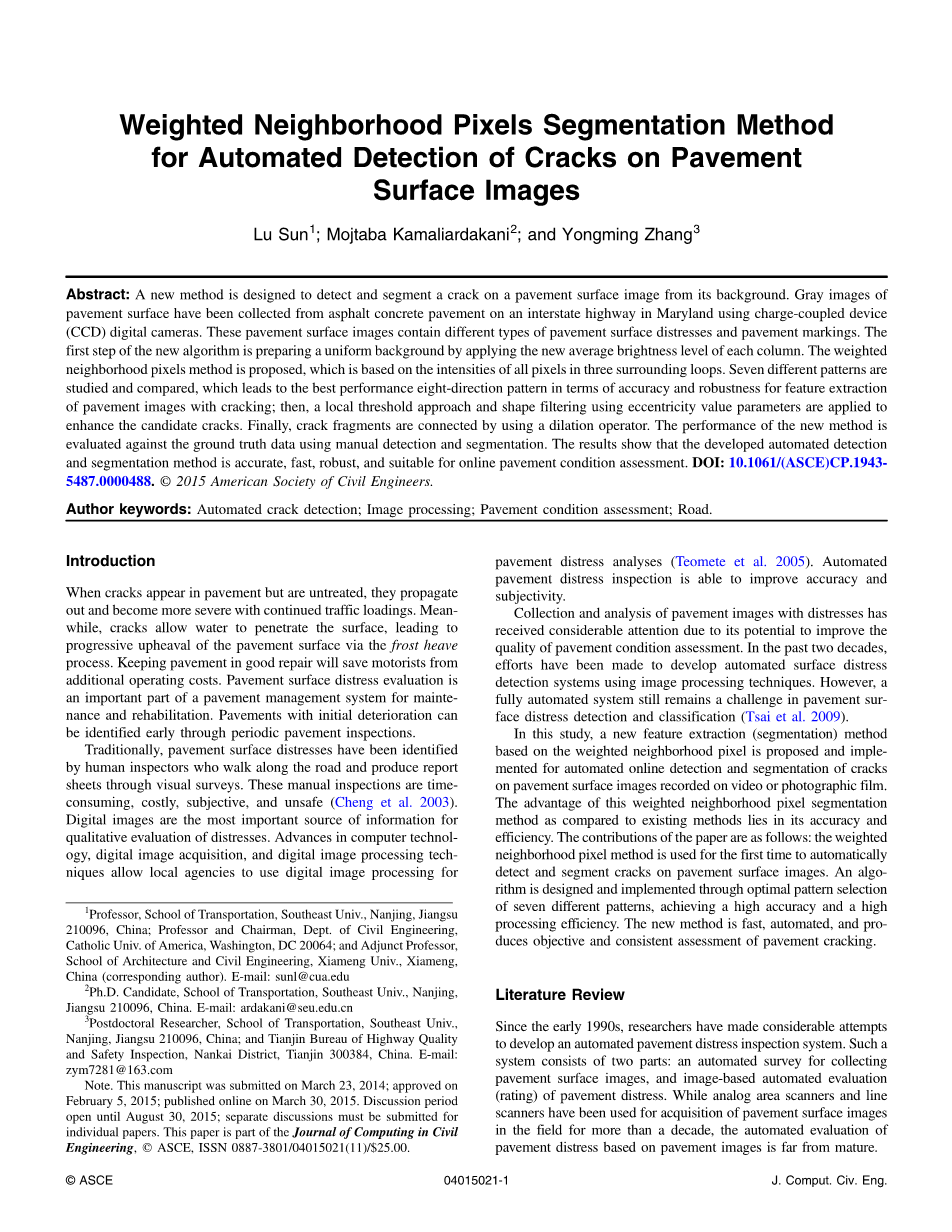 LuSun; Mojtaba Kamaliardakani;and Yongming Zhang
