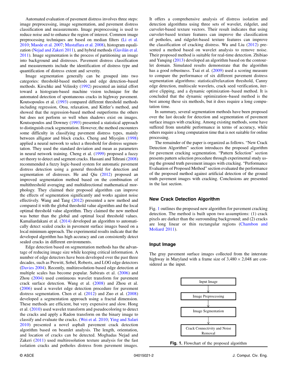 总之,过去十年来已经提出了几种分割方法用于检测和分割具有开裂的路面表面图像。在现有的方法中,一些在准确性方面性能不稳定,而另一些则需要很长的计算时间,不适合在线处理。