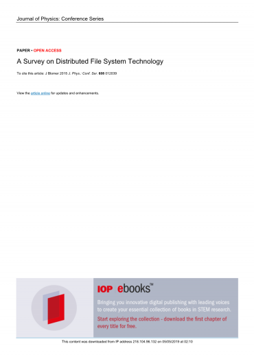 分布式文件系统技术综述外文翻译资料 2021-11-17 00:28:08 英语原文共 9 页 英语原文共 8 页 原文和译文剩余内容已隐藏,您需要先支付 30元 才能查看原文和译文全部内容!立即支付 发小红书推广免费获取该资料资格。点击链接进入获取推广文案即可: Ai一键组稿 | 降AI率 | 降重复率 | 论文一键排版 PREVIOUS NEXT 您可能感兴趣的文章 看边界:边界感知面部对齐算外文翻译资料 看边界:边界感知面部对齐算外文翻译资料 一种支持分布式正态智能监控的多代理体系结构外文翻译资料 增强的无线局域网协作MAC外文翻译资料 近眼显示器的绝对辐射和光度测量外文翻译资料 红外遥控系统外文翻译资料 一幅单一图像中雨滴去除的专注生成对抗性网络外文翻译资料 深度残差学习在图像识别中的应用外文翻译资料 低成本,便携式室内环境质量监测装置的设计与开发外文翻译资料 使用基于查询蓝牙的RSSI概率分布进行室内定位外文翻译资料