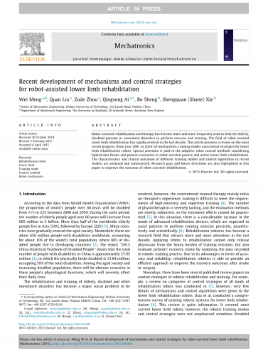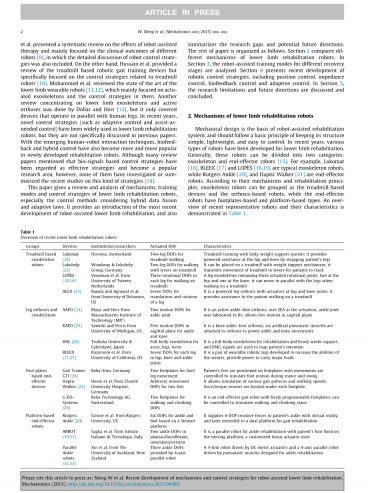 如今,已有几篇关于机器人康复和训练控制策略的评论文章。例如,对各类康复机器人的控制策略类别进行了综述[7]然而,很少有关于下肢康复机器人的机制和控制算法的细节。迪亚兹等人。对现有的下肢康复机器人系统进行了全面调查[8].这篇评论非常有用。它涵盖了大多数现有的下肢机器人,然而,机器人训练模式和控制策略并未以某种方式得到强调。Kwakkel等。对机器人辅助治疗的效果进行了系统评价,主要关注不同机器人的临床结果[9],其中还包括机器人控制策略的详细讨论。另一方面,Hussain等人。提供了基于跑步机的机器人步态训练设备的评论,但特别关注与跑步机机器人相关的控制策略[10].穆罕默德等人。回顾了下肢可穿戴式机器人的最新技术[11,12],主要关注驱动外骨骼及其控制策略。另一篇专注于下肢外骨骼和活动矫形器的综述由Dollar和Herr完成[13],但它仅涵盖与人腿平行操作的设备。近年来,新型控制策略(如自适应控制和辅助控制)已广泛应用于下肢康复机器人,但在以前的论文中没有具体讨论。随着新兴的人机交互技术的出现,生物反馈和混合控制在新开发的康复机器人中也越来越受欢迎。虽然许多评论文章提到基于生物信号的控制策略被认为是有效的策略并成为一个受欢迎的研究领域,但是,他们都没有调查或总结最近关于这种策略的研究。[14].