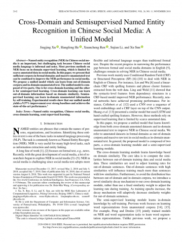 本文提出了一种从跨域注释数据集和域内无注释文本中学习知识的统一模型,以提高中文社交媒体的NER能力。我们将正式域中的带注释数据集作为领域外的语料库,而社交媒体中的大量原始文本作为领域内的无注释文本。一般情况下,该模型由两部分组成,一是跨域学习,二是半监督学习模块。