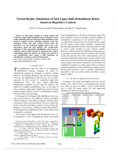 关键词:虚拟现实 重复控制 5dof 上肢康复机器人