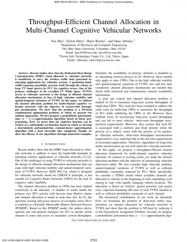 类似地,主通道的可用性在[4]中被建模为一个交替更新过程。然而,这些模型只适用于静态crn。由于TVWS具有较高的车辆移动性和时空变异性,需要同时利用统计和瞬时信道可用性信息的新型低时间复杂度信道分配机制。