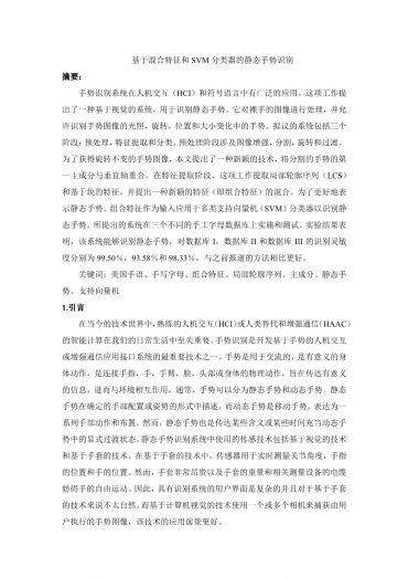 基于傅立叶描述子的手势特征提取与识别外文翻译资料 2021-11-17 23:09:19 英语原文共 14 页 原文和译文剩余内容已隐藏,您需要先支付 30元 才能查看原文和译文全部内容!立即支付 发小红书推广免费获取该资料资格。点击链接进入获取推广文案即可: Ai一键组稿 | 降AI率 | 降重复率 | 论文一键排版 PREVIOUS NEXT 您可能感兴趣的文章 看边界:边界感知面部对齐算外文翻译资料 看边界:边界感知面部对齐算外文翻译资料 一种支持分布式正态智能监控的多代理体系结构外文翻译资料 增强的无线局域网协作MAC外文翻译资料 近眼显示器的绝对辐射和光度测量外文翻译资料 红外遥控系统外文翻译资料 一幅单一图像中雨滴去除的专注生成对抗性网络外文翻译资料 深度残差学习在图像识别中的应用外文翻译资料 低成本,便携式室内环境质量监测装置的设计与开发外文翻译资料 使用基于查询蓝牙的RSSI概率分布进行室内定位外文翻译资料