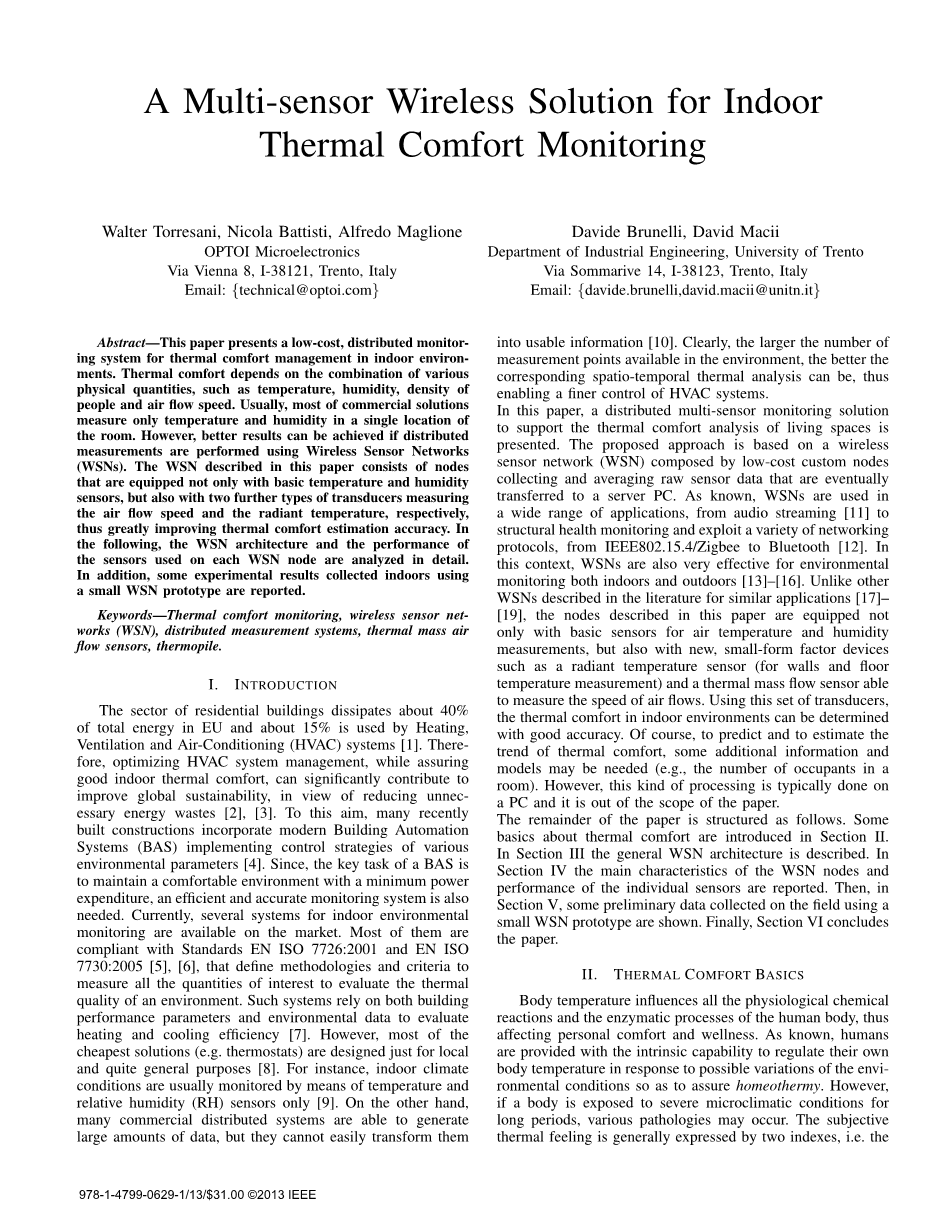 关键词:热舒适监测,无线传感器网络(WSN),分布式测量系统,热质量空气流量传感器,热电堆。
