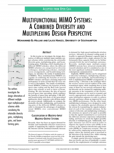 这一贡献为多功能MIMO系统领域的进一步研究进展提供了一个轻松的视角,并展示了多功能MIMO如何实现分集,多路复用和波束成形增益。 更明确地,在下一节中,我们详细阐述了多功能MIMO方案的设计,并描述了多功能MIMO系统思想的演变。 我们量化了不同MIMO方案的可实现性能。 接着比较不同的MIMO设计方案在的分集、复用和波束成形增益,然后在最后部分中得出我们的结论。