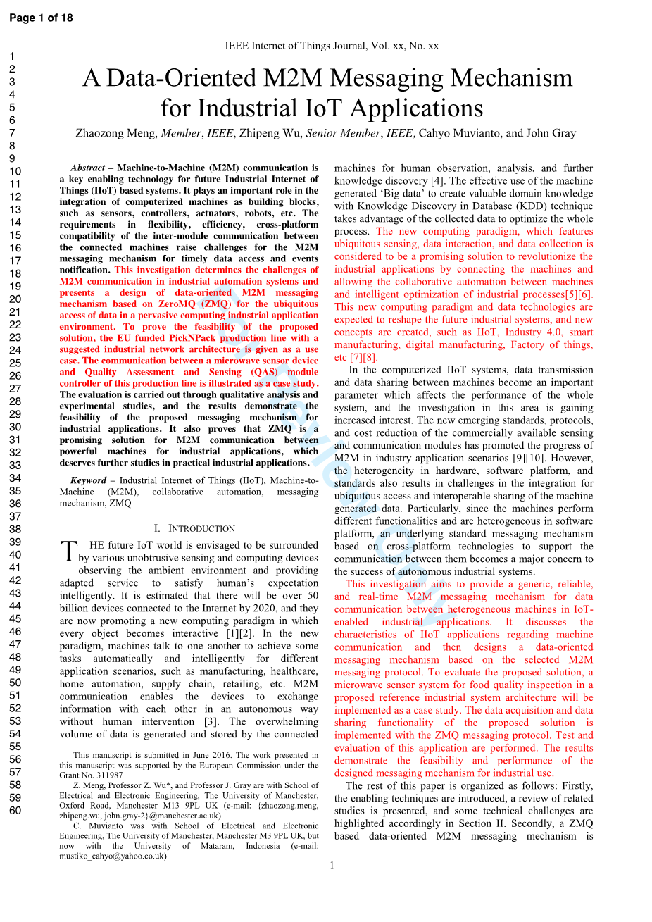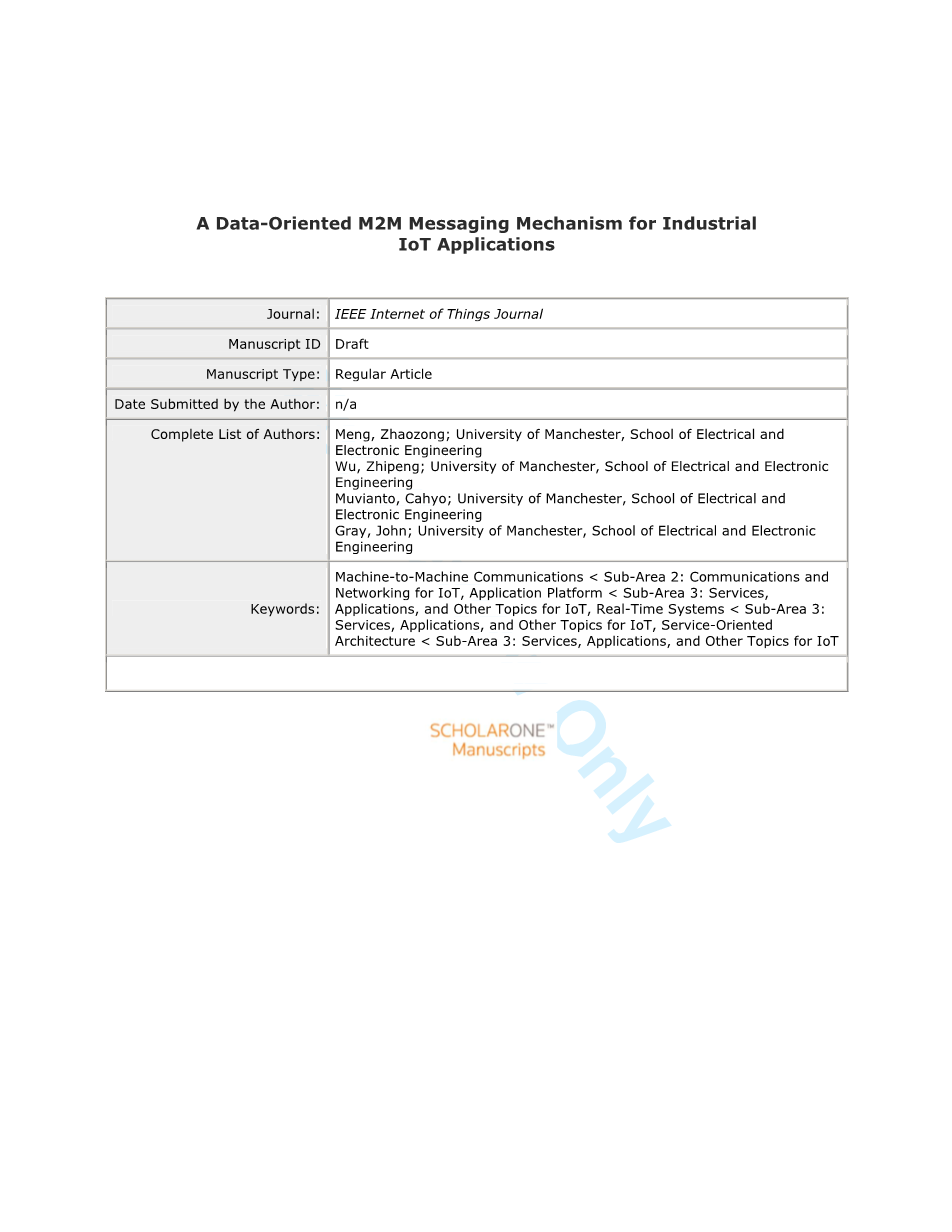 用于工业物联网应用的面向数据的M2M消息传递机制外文翻译资料
