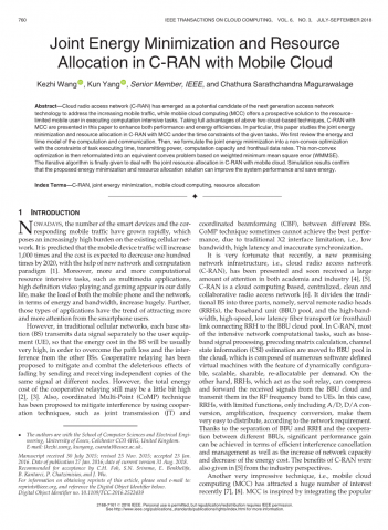 关键词-C-RAN,联合能量最小化,移动云计算,资源分配
