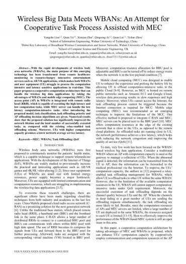 面向无线体域网的无线大数据:移动边缘计算下的协同任务处理研究