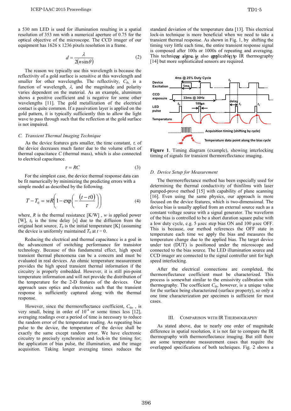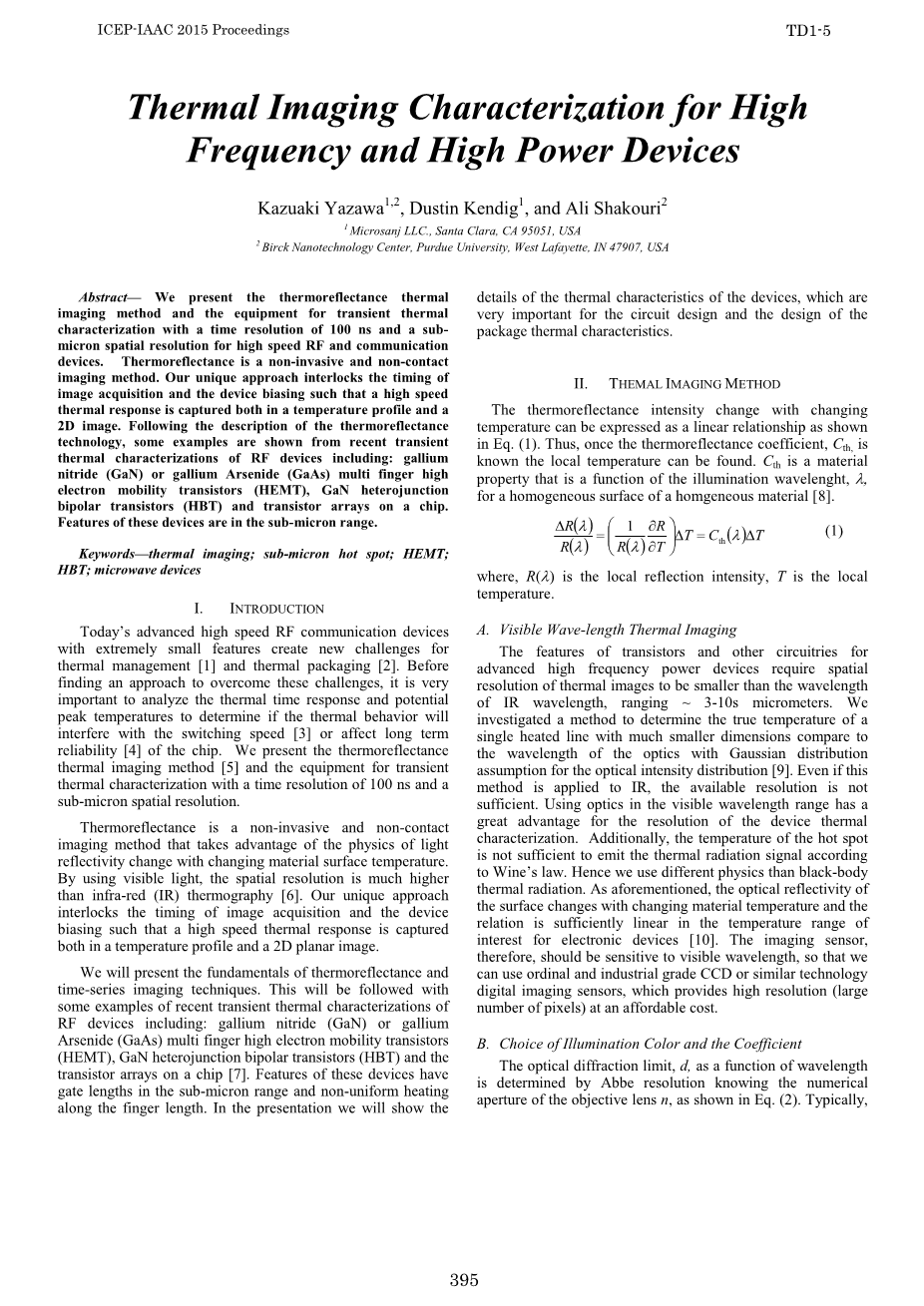 当今先进的具有极小特性高速射频通信器件给热管理[1]和热封装[2]带来了新的挑战。在找到解决这些挑战的方法之前,分析热时间响应和潜在峰值温度以确定热行为是否会干扰开关速度[3]或影响芯片的长期可靠性[4]非常重要。我们提出热反射成像的方法[5]和具有100ns时间分辨率,微米分辨率的瞬态热特性的器件。