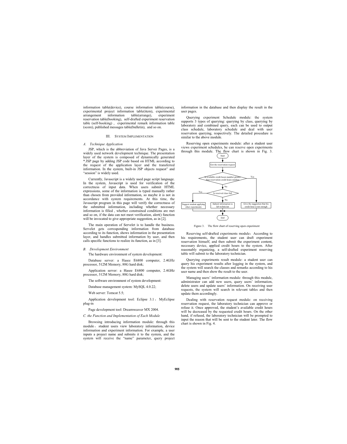 因此,设计并实施了基于网络的开放实验室管理信息系统。该系统基于B / S架构和JSP Servlet JavaBeans模式,MySql作为系统中的数据库。通过该系统,学生用户可以查询实验日程,预约开放实验,查询实验结果等; 实验室技术人员可以管理用户信息,管理实验课程,分级实验,发布信息等。