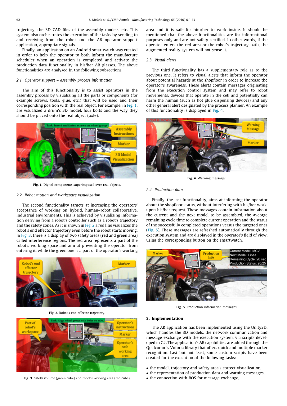 制造规划包含存储在执行控制器的存储库中的所有数据,这是资源所需的。这些包括任务序列,要运行的机器人程序以及要显示的信息,例如轨迹,装配模型的3D CAD文件等。该系统还通过向机器人和AR操作员支持应用程序发送和接收适当的信号来编排执行任务。
