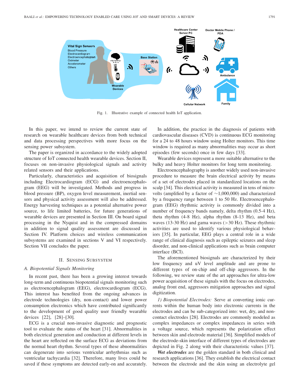 本文根据物联网连接的健康可穿戴设备的广泛采用的结构进行组织。 第二部分着重介绍无创生理信号和活动相关传感器及其应用。
