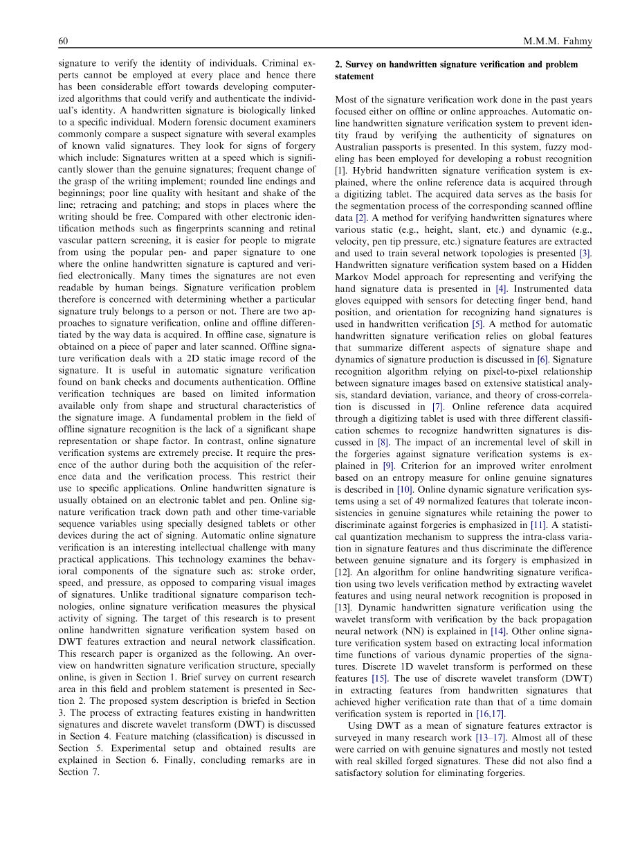 进行了调查 [13–17]。 几乎所有这些都是用真正的签名进行的,而且大多数都没有用真正熟练的伪造签名进行测试。 这些尝试也没能找到一个令人满意的方法来消除伪造。