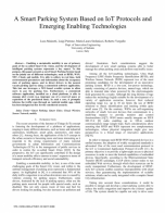 事实上,实现可持续的移动性是智慧城市愿景中最具挑战性的目标之--,其中,停车区域的最佳管理是一个基本方面。正如[4]中强调的那样,据估计,城市市区每日交通拥堵的30%是由停放车辆的车辆引起的。此外,由于缺乏停车位而使一些司机经常使用为有特殊需要的人保留的停车位,例如残疾人。这不仅会给寻找停车位的司机造成浪费时间和燃料,还会增加空气污染和驾驶员的挫败感。这些考虑表明,新智能停车系统的开发能够更好地管理城市停车场并执行道路交通问题。在所有支持物联网的技术中,超高频(UHF)射频识别(RFID)和无线传感器网络(WSN) 代表了开发创新停车系统的两个最有希望的候选者。RFID 是一种低成本,低功耗技术,主要由被动设备,命名标签组成,能够在读取器产生的电磁场供电时传输数据。虽然标签的长寿命使得该技术非常适合各种应用场景的开发,但是它们的缩小的操作范围(即高达10米)限制了RFID解决方案在相当小的区域内进行物体识别和跟踪的使用[ 5]。相反,无线传感器网络是小型低成本设备的自组织网络,它们以多跳方式进行通信,以提供监视和控制功能[6] [7]。WSN节目通常集成IEEE 802.15.4 [8]无线电,可实现高