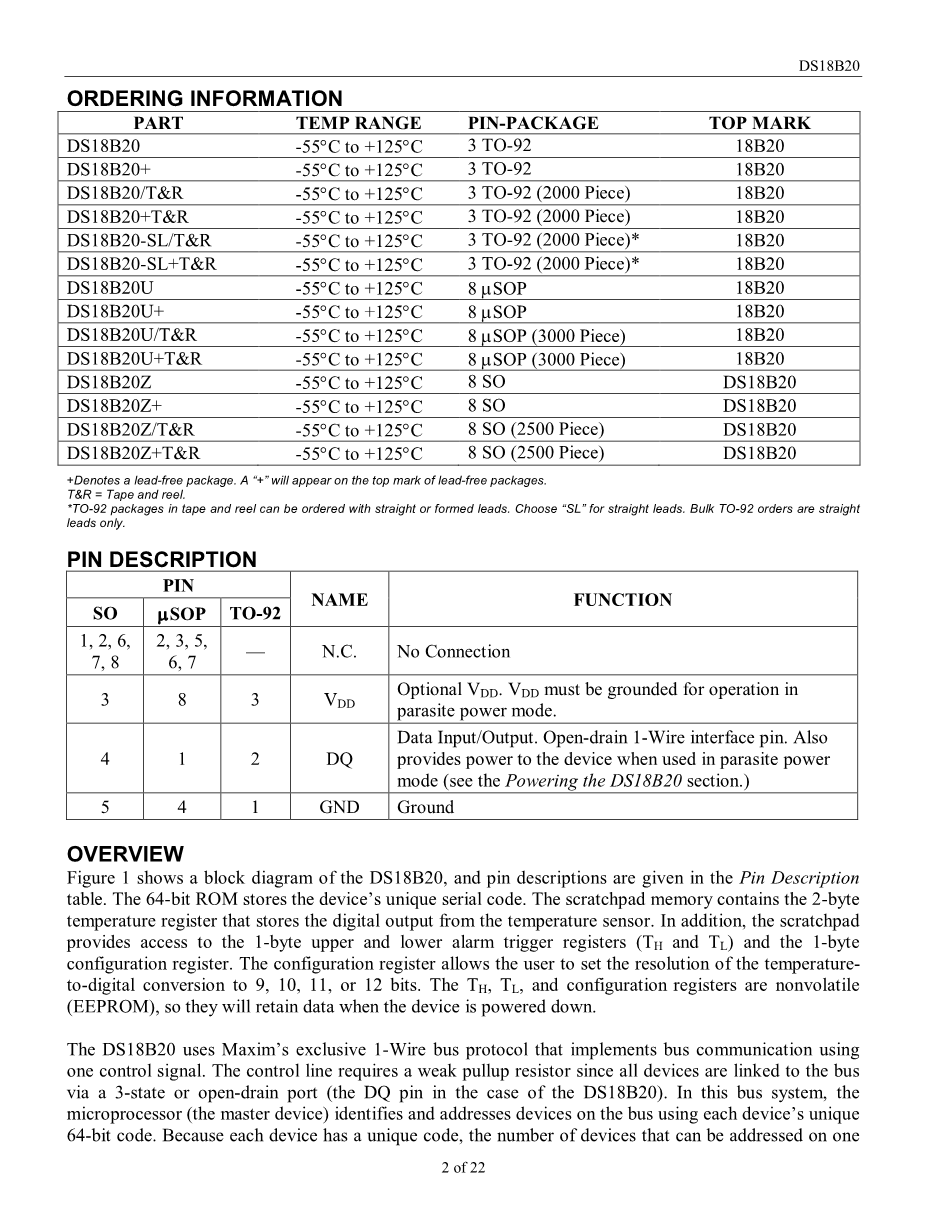 独特的1-Wire接口只需要一个端口引脚进行通信