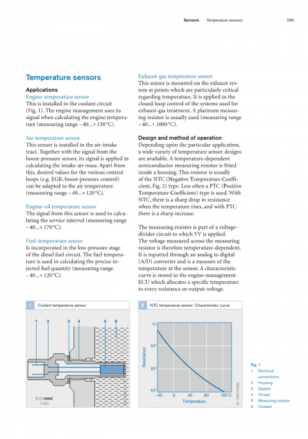 它安装在冷却液回路中(图1)。引擎管理使用它计算发动机温度时的信号(测量范围 - 40 130°C)。
