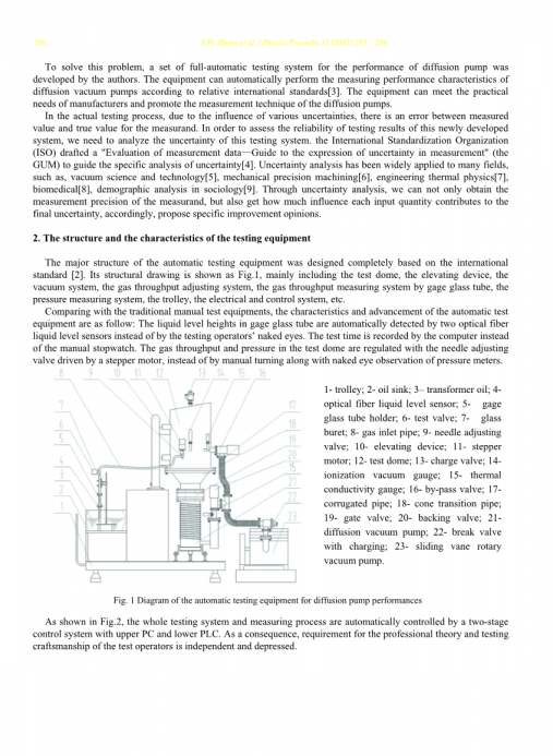 扩散泵是一种传统的高真空泵,它在真空科学技术领域中应用最为广泛并发挥着重要作用。然而,扩散泵性能特性的测量技术仍然落后,难以实现自动化。原因如下:根据国际标准,测量过程相当复杂。所有的测量操作都是手工操作,这意味着测试操作人员必须经过专门的培训并且必须掌握专业理论和测试技能。测量结果精度差,并且受多种人为因素的影响较大。因此,制造商很难自行测量扩散泵的性能特性。所以,大多数扩散泵在出厂前没有进行性能测试。