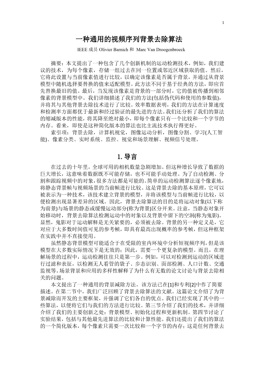 一种通用的视频序列背景去除算法外文翻译资料 2022-08-08 16:20:00 英语原文共 16 页,剩余内容已隐藏,支付完成后下载完整资料 英语译文共 20 页,剩余内容已隐藏,支付完成后下载完整资料 资料编号:[240587],资料为PDF文档或Word文档,PDF文档可免费转换为Word 原文和译文剩余内容已隐藏,您需要先支付 30元 才能查看原文和译文全部内容!立即支付 发小红书推广免费获取该资料资格。点击链接进入获取推广文案即可: Ai一键组稿 | 降AI率 | 降重复率 | 论文一键排版 PREVIOUS NEXT 您可能感兴趣的文章 基于项目的协同过滤推荐算法外文翻译资料 使用H-maxima和改进的Hough变换的道路检测外文翻译资料 学习马氏距离度量在数据聚类和分类中的应用外文翻译资料 基于单片机的智能电子密码锁外文翻译资料 Spring Web MVC框架用于快速开源J2EE应用开发:案例研究外文翻译资料 生成式对抗网络外文翻译资料 办公自动化系统外文翻译资料 图文人机对话界面的设计与实现外文翻译资料 Mole:可扩展的用户生成的WiFi定位引擎外文翻译资料 MVC模式与MVP模式的不同外文翻译资料