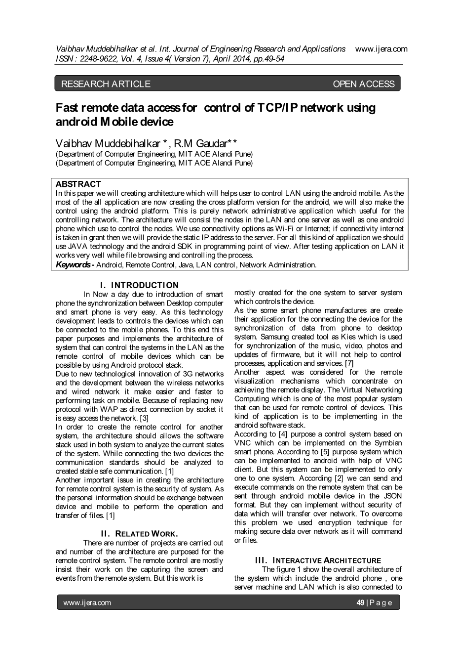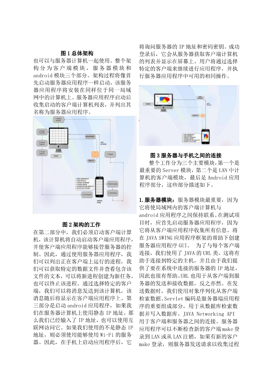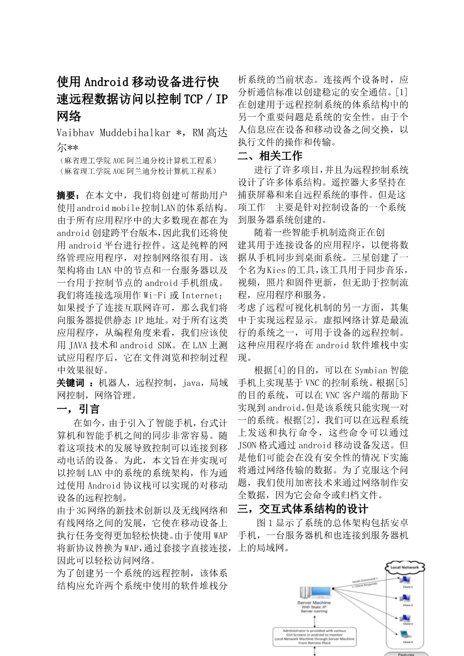 使用Android移动设备进行快速远程数据访问以控制TCP/ IP网络外文翻译资料 2022-08-08 16:45:47 英语原文共 6 页,剩余内容已隐藏,支付完成后下载完整资料 英语译文共 6 页,剩余内容已隐藏,支付完成后下载完整资料 资料编号:[240365],资料为PDF文档或Word文档,PDF文档可免费转换为Word 原文和译文剩余内容已隐藏,您需要先支付 30元 才能查看原文和译文全部内容!立即支付 发小红书推广免费获取该资料资格。点击链接进入获取推广文案即可: Ai一键组稿 | 降AI率 | 降重复率 | 论文一键排版 PREVIOUS NEXT 您可能感兴趣的文章 基于项目的协同过滤推荐算法外文翻译资料 使用H-maxima和改进的Hough变换的道路检测外文翻译资料 学习马氏距离度量在数据聚类和分类中的应用外文翻译资料 基于单片机的智能电子密码锁外文翻译资料 Spring Web MVC框架用于快速开源J2EE应用开发:案例研究外文翻译资料 生成式对抗网络外文翻译资料 办公自动化系统外文翻译资料 图文人机对话界面的设计与实现外文翻译资料 Mole:可扩展的用户生成的WiFi定位引擎外文翻译资料 MVC模式与MVP模式的不同外文翻译资料