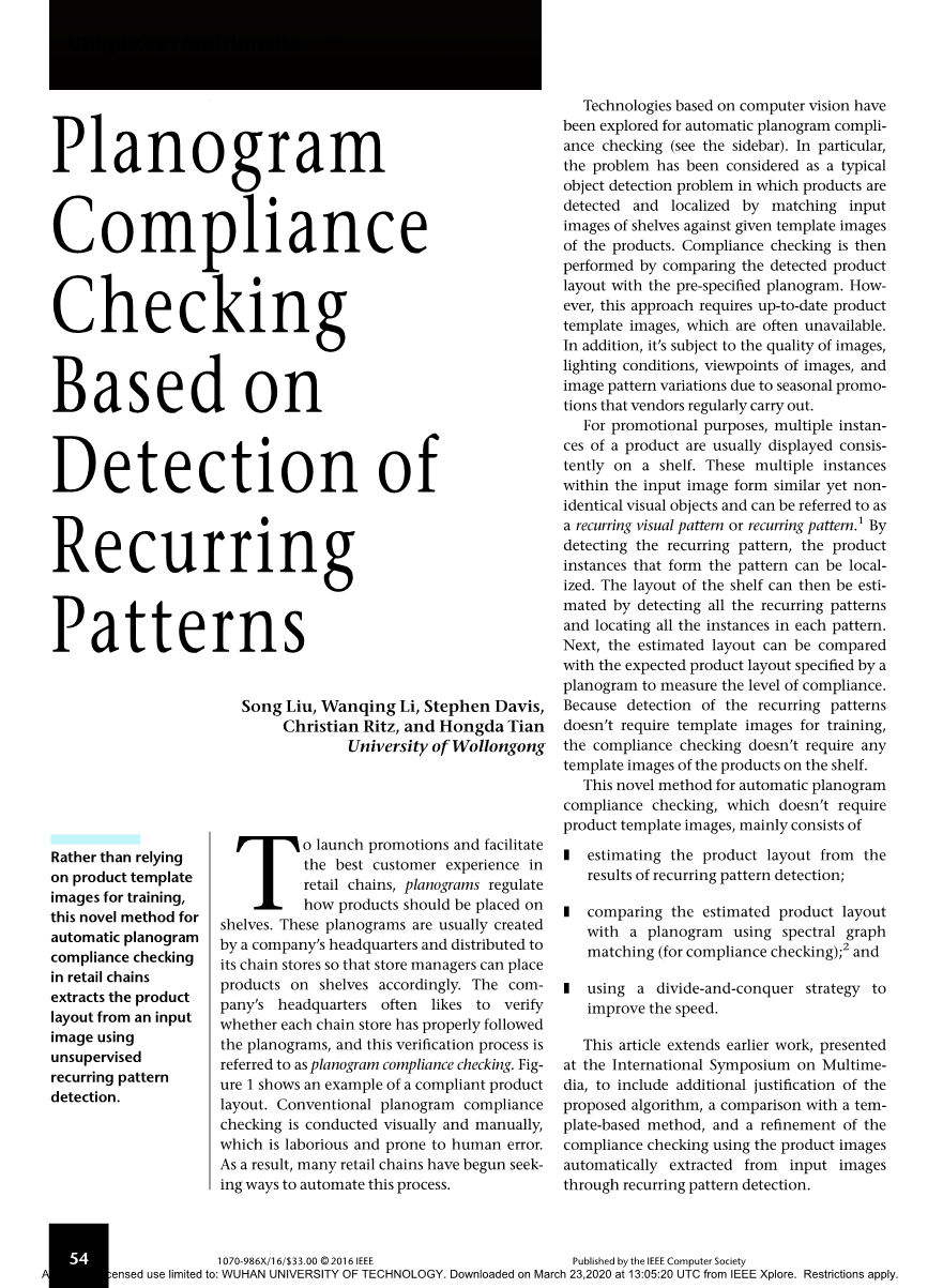 本文扩展了之前在多媒体国际研讨会上所做的工作,包括对所提算法的额外验证、与基于模板的方法的比较,以及对使用通过重复模式检测从输入图像中自动提取的产品图像进行合规性检查的改进。