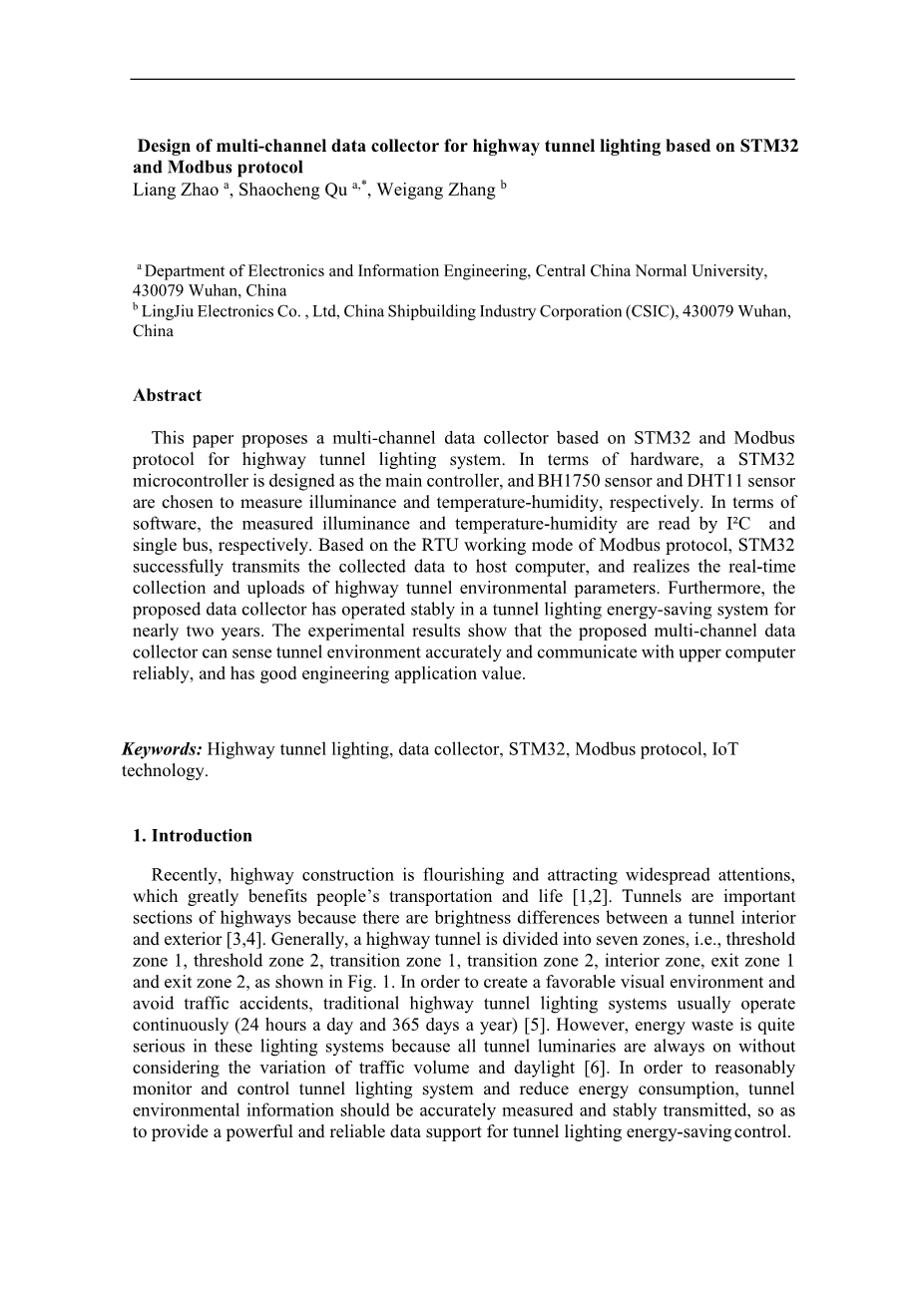 关键词:公路隧道照明、数据采集器、STM32、Modbus协议、物联网技术。