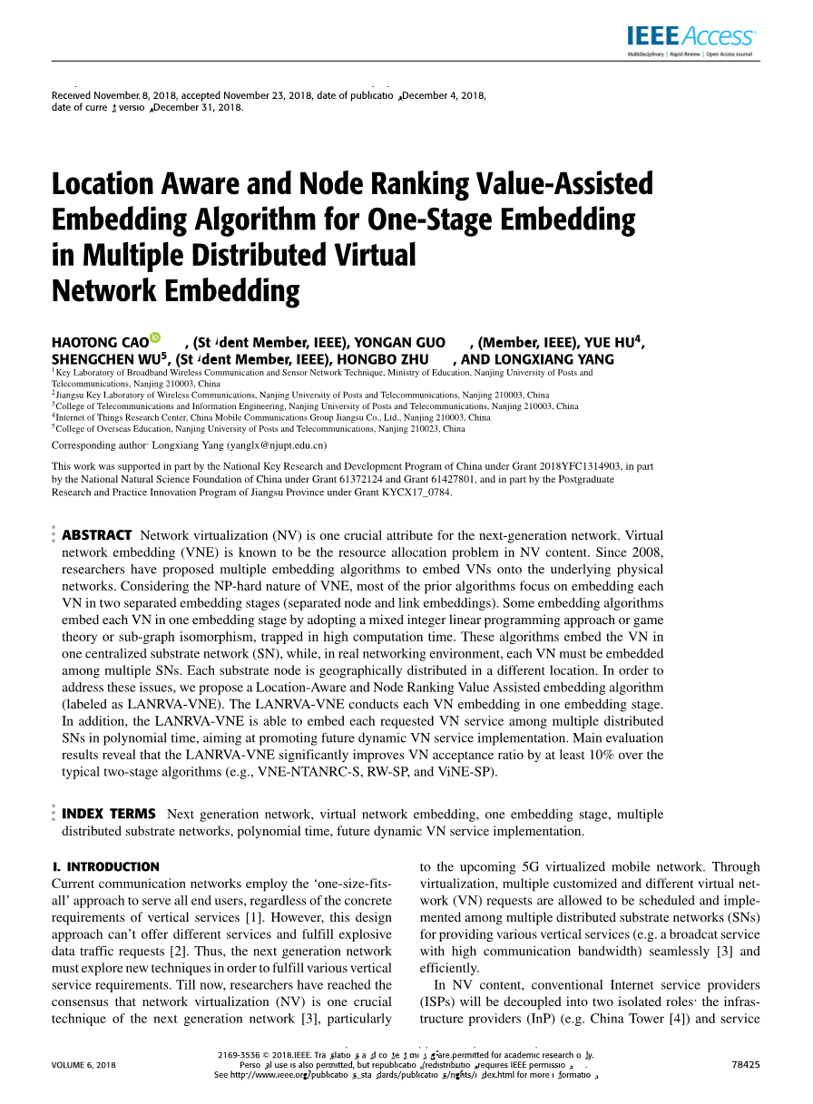 一阶段多分布式位置感知和节点排序值辅助虚拟网络映射算法外文翻译资料