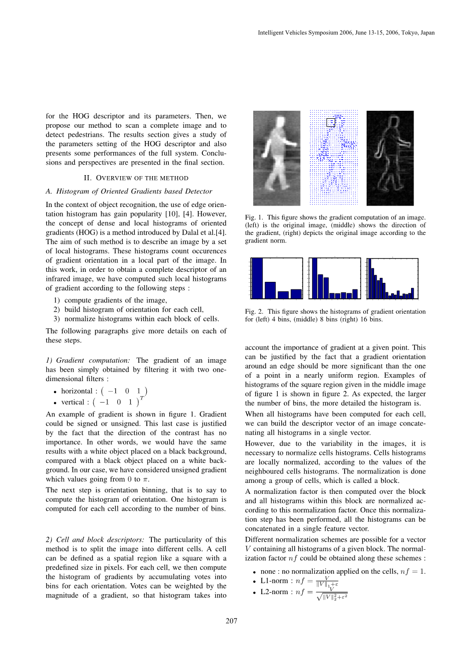 论文组织如下。 在第二-A节中,我们描述了单帧探测器,并详细介绍了智HOG及其参数。然后,我们提出了一种扫描完整图像和检测行人的方法。 结果部分对HOG描述符的参数设置进行了研究,并给出了整个系统的一些性能。结论和观点在最后一节中提出。