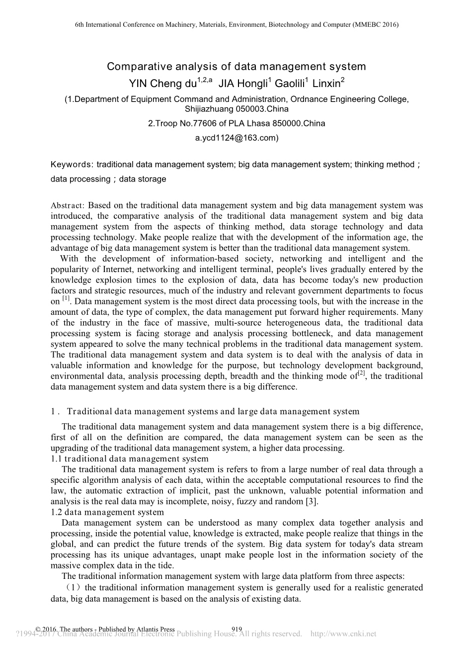 数据管理系统的比较分析外文翻译资料