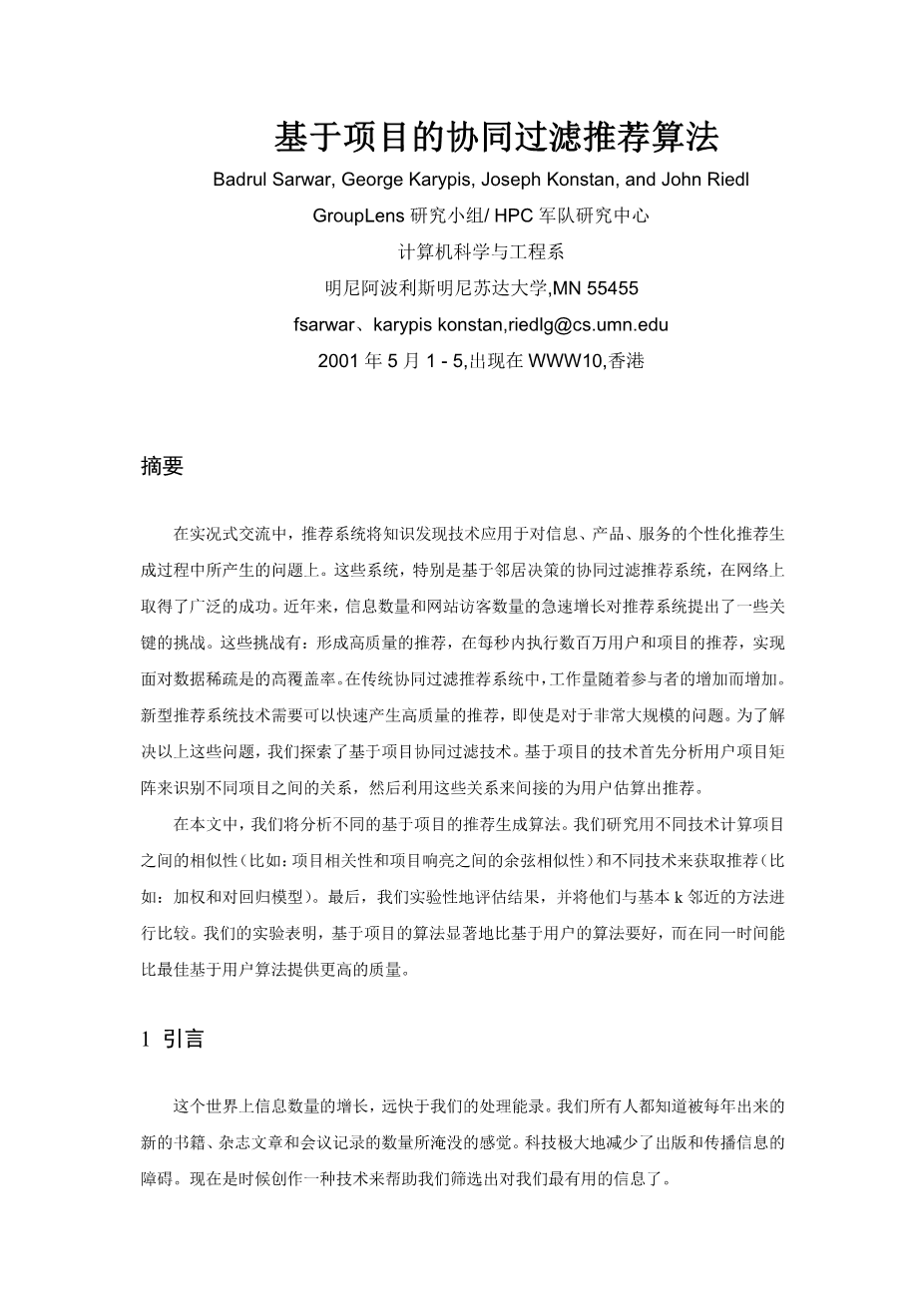 基于项目的协同过滤推荐算法外文翻译资料 2023-03-06 17:19:45 英语原文共 15 页,剩余内容已隐藏,支付完成后下载完整资料 英语译文共 20 页,剩余内容已隐藏,支付完成后下载完整资料 资料编号:[29121],资料为PDF文档或Word文档,PDF文档可免费转换为Word 原文和译文剩余内容已隐藏,您需要先支付 30元 才能查看原文和译文全部内容!立即支付 发小红书推广免费获取该资料资格。点击链接进入获取推广文案即可: Ai一键组稿 | 降AI率 | 降重复率 | 论文一键排版 PREVIOUS NEXT 您可能感兴趣的文章 基于项目的协同过滤推荐算法外文翻译资料 使用H-maxima和改进的Hough变换的道路检测外文翻译资料 学习马氏距离度量在数据聚类和分类中的应用外文翻译资料 基于单片机的智能电子密码锁外文翻译资料 Spring Web MVC框架用于快速开源J2EE应用开发:案例研究外文翻译资料 生成式对抗网络外文翻译资料 办公自动化系统外文翻译资料 图文人机对话界面的设计与实现外文翻译资料 Mole:可扩展的用户生成的WiFi定位引擎外文翻译资料 MVC模式与MVP模式的不同外文翻译资料