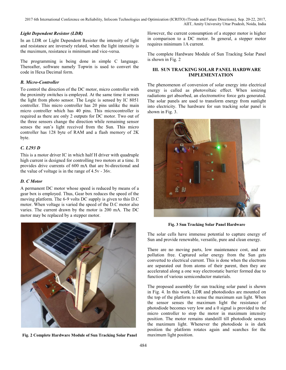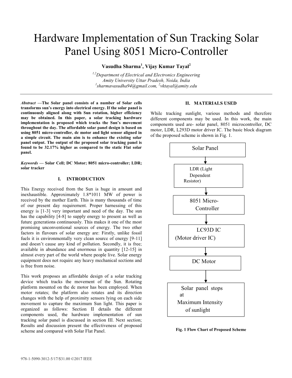 [1] Arindam Bose, Sounak Sarkar and Sayan Das, “Helianthus – a Low Cost High Efficient Solar Tracking System Using AVR Microcontroller” International Journal of Scientific amp; Engineering Research, Volume 3, pp. 1-6, 2012.