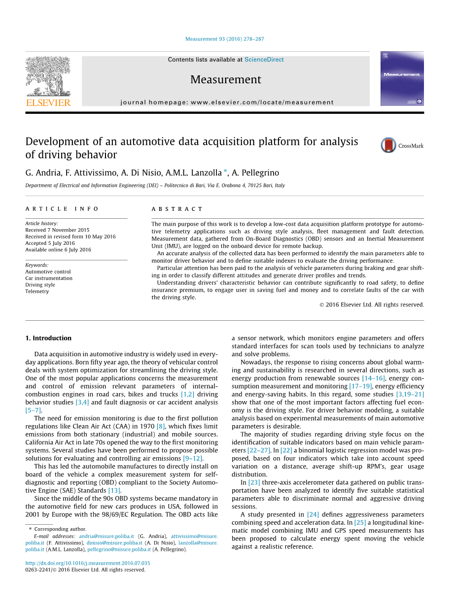 本文的研究目的是利用一个专门开发的数据采集平台,根据在同一辆车和同一轨道上测得的变速和纵向加速度,对驾驶员的不同行为进行评估。这种分析结合了车载诊断和惯性测量数据。